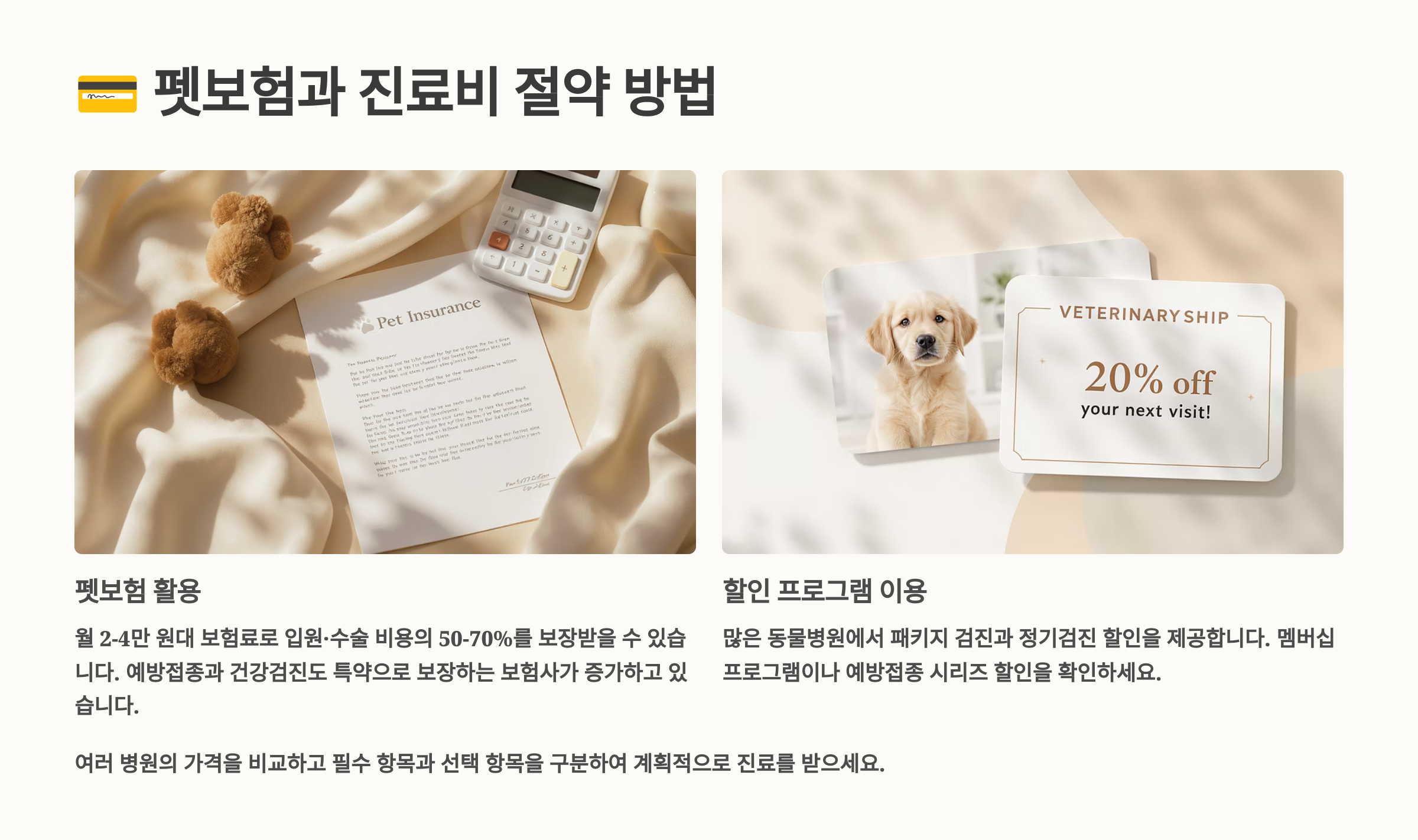 | 반려동물 병원비 절약 완벽 가이드, 병원비 아끼는 현실적인 방법 (0) | 2025.06.19 |