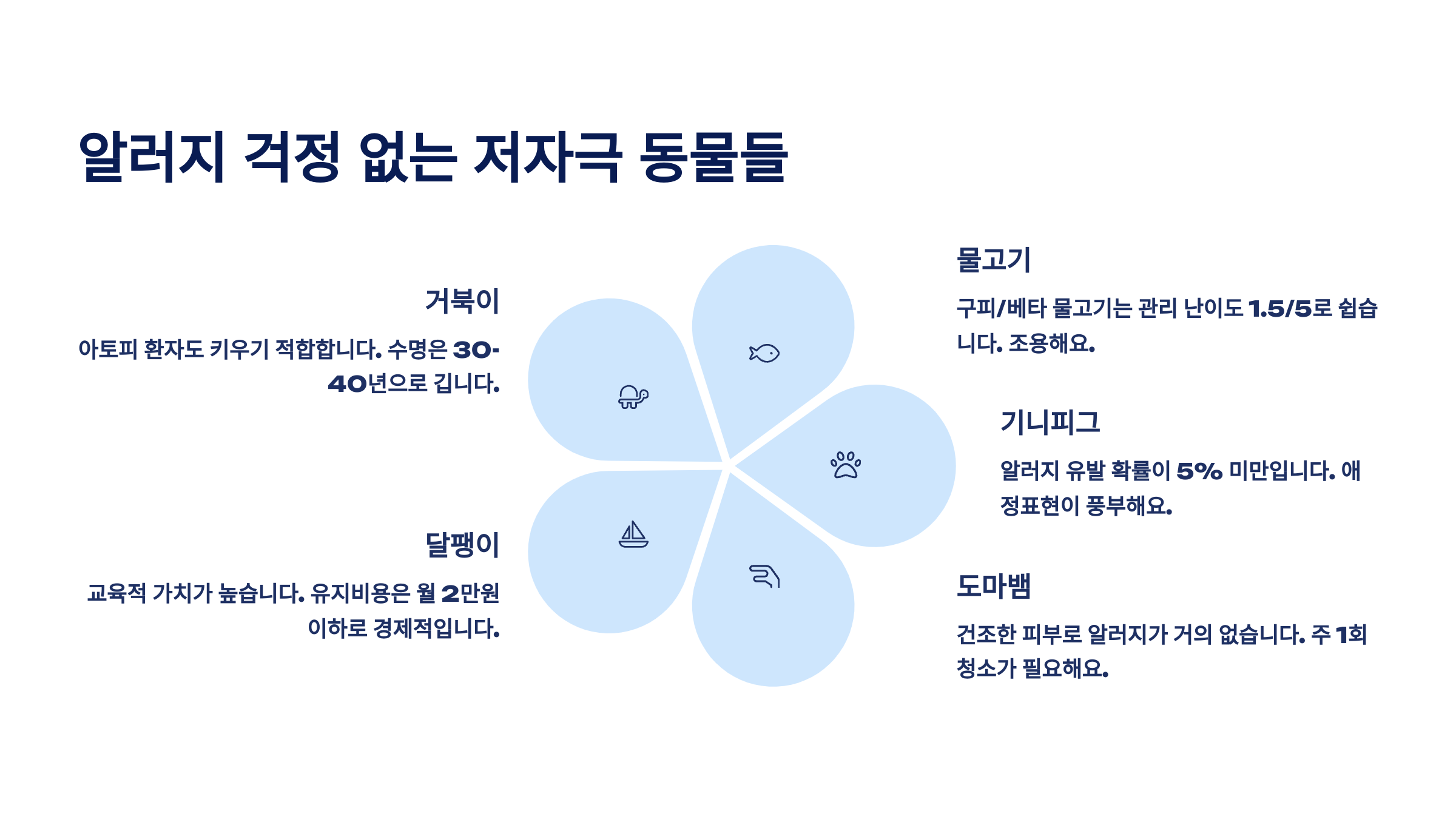 🐢 알러지 걱정 없는 저자극 동물들