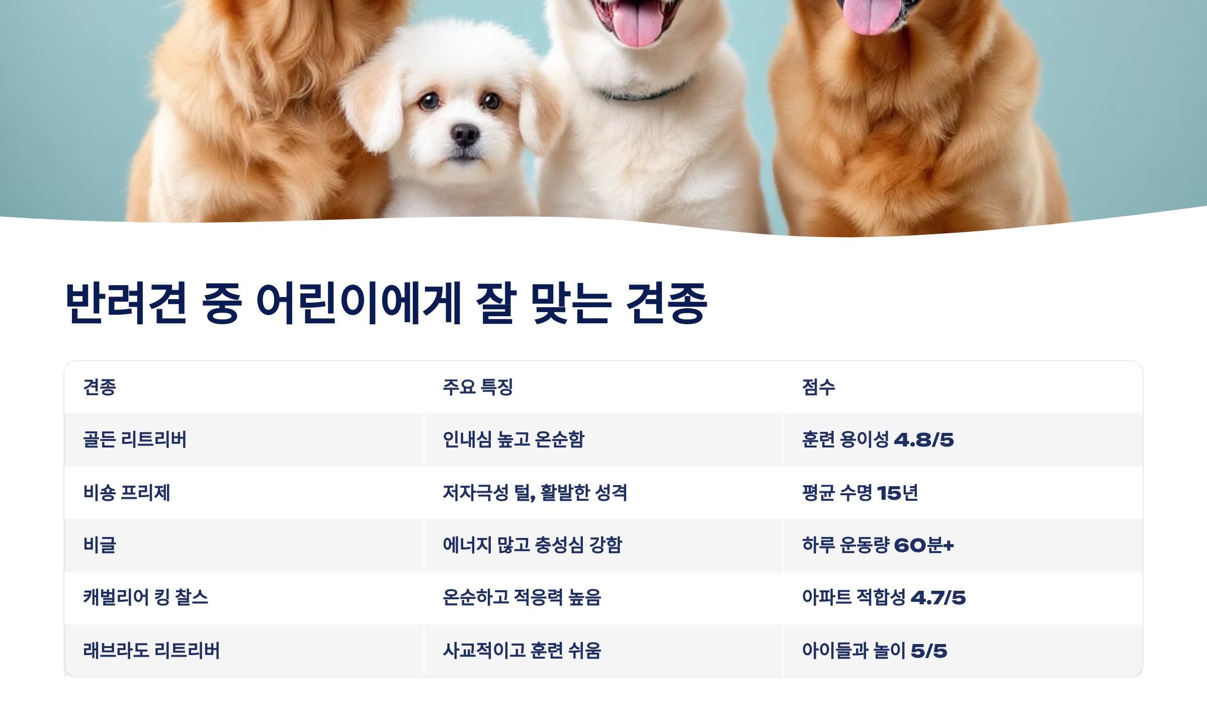 강아지는 아이들과 쉽게 친해지고 감정을 표현하거나 보호 본능이 강한 동물이에요. 하지만 모든 강아지가 아이에게 잘 맞는 건 아니에요. 성격이 순하고, 예측 가능한 행동을 하는 견종이 좋아요! 🐾