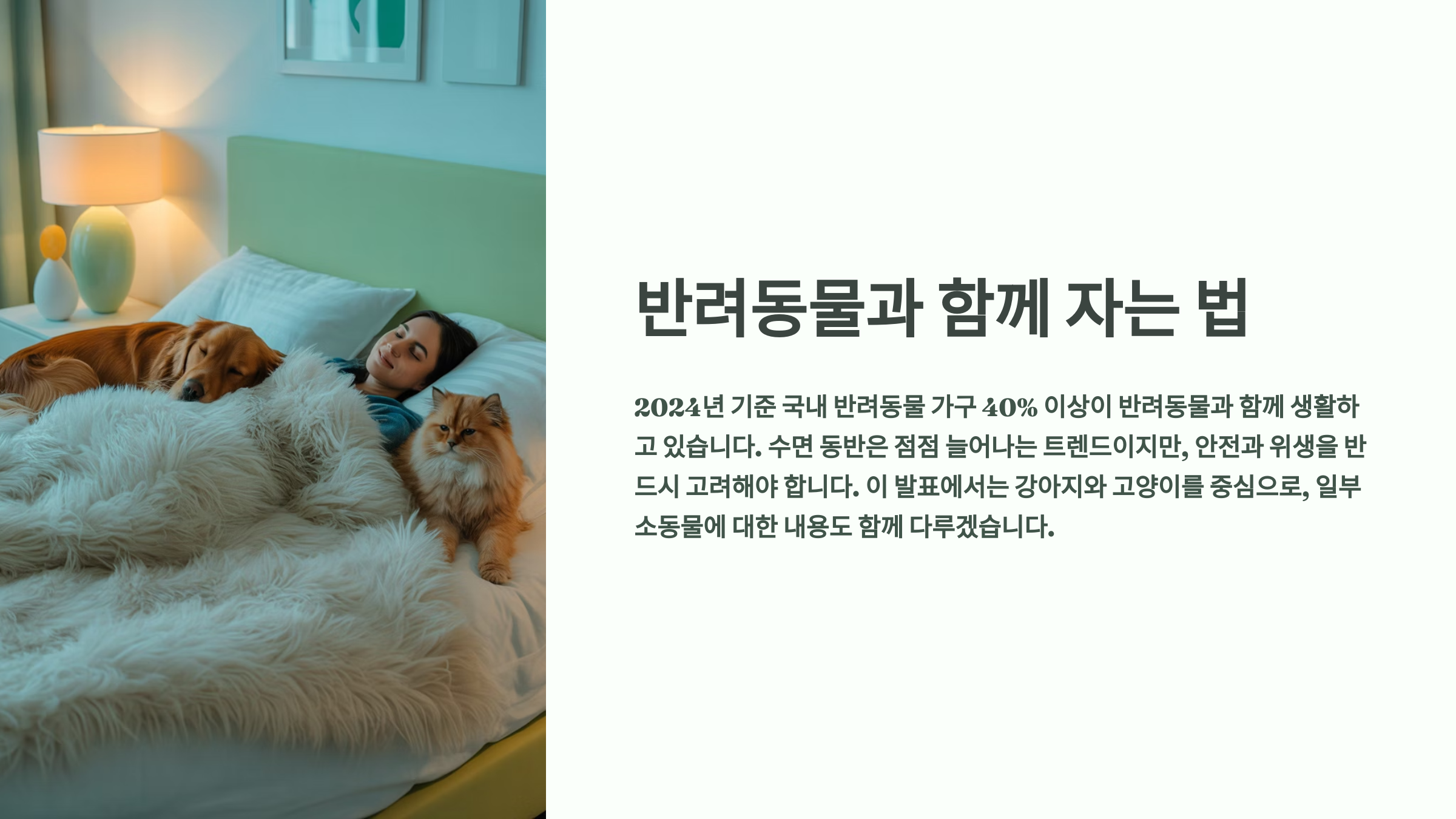 반려동물과 함께 잠을 자는 것은 많은 반려인들이 경험하는 특별한 순간이에요. 따뜻한 체온과 부드러운 털, 그리고 사랑스러운 숨소리가 주는 안정감은 그 무엇과도 바꿀 수 없는 행복이죠. 하지만 안전하고 건강한 수면을 위해서는 몇 가지 중요한 사항들을 알고 있어야 해요.