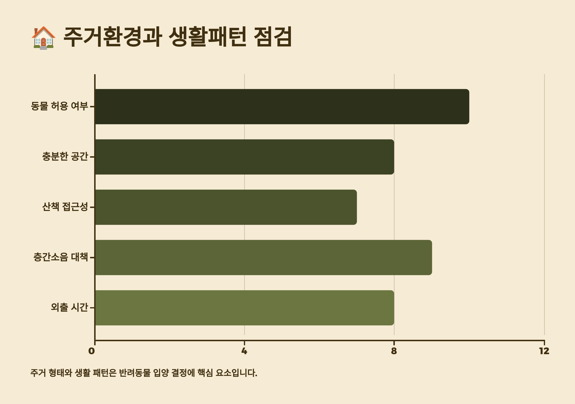 적합한 주거환경과 생활패턴이 반려동물과 사람 모두의 행복을 좌우해요. 충분히 준비된 환경에서 입양하세요! 🏠