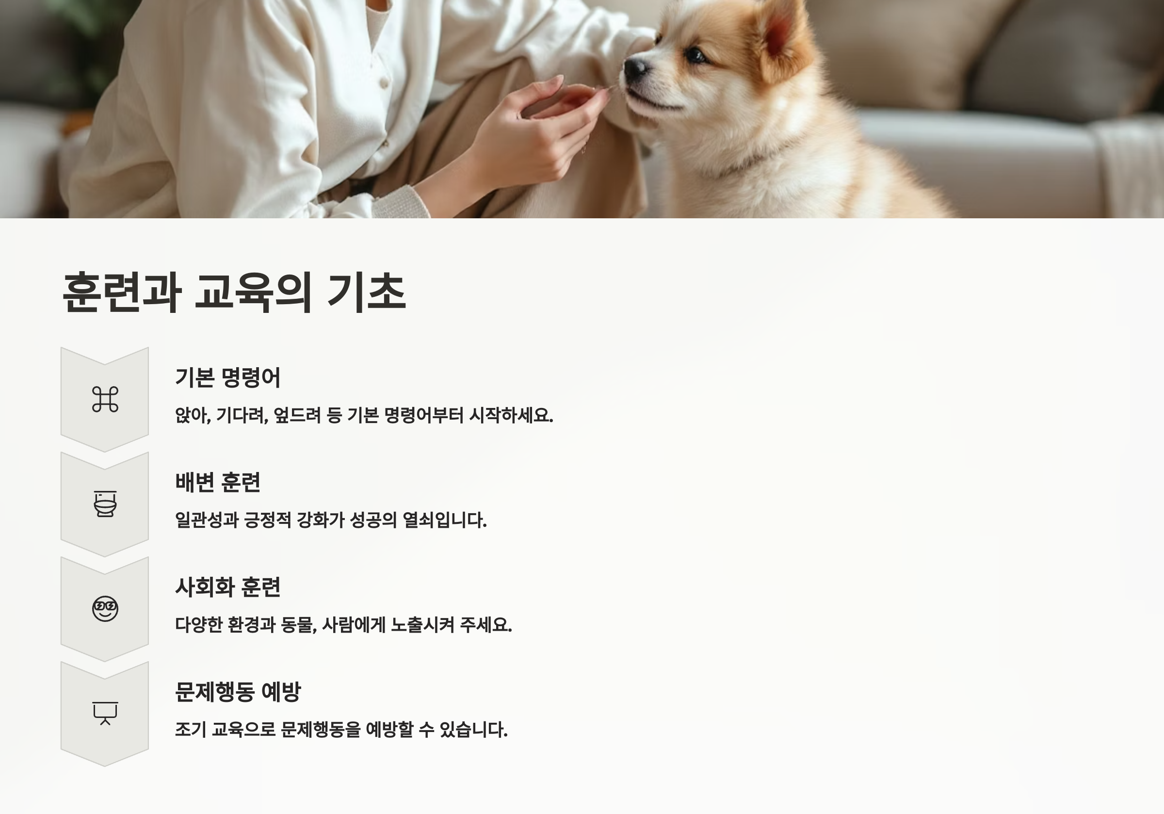 훈련은 인내심과 꾸준함이 핵심이에요. 우리 아이와의 소통을 즐기면서 차근차근 진행해 보세요! 🎓
