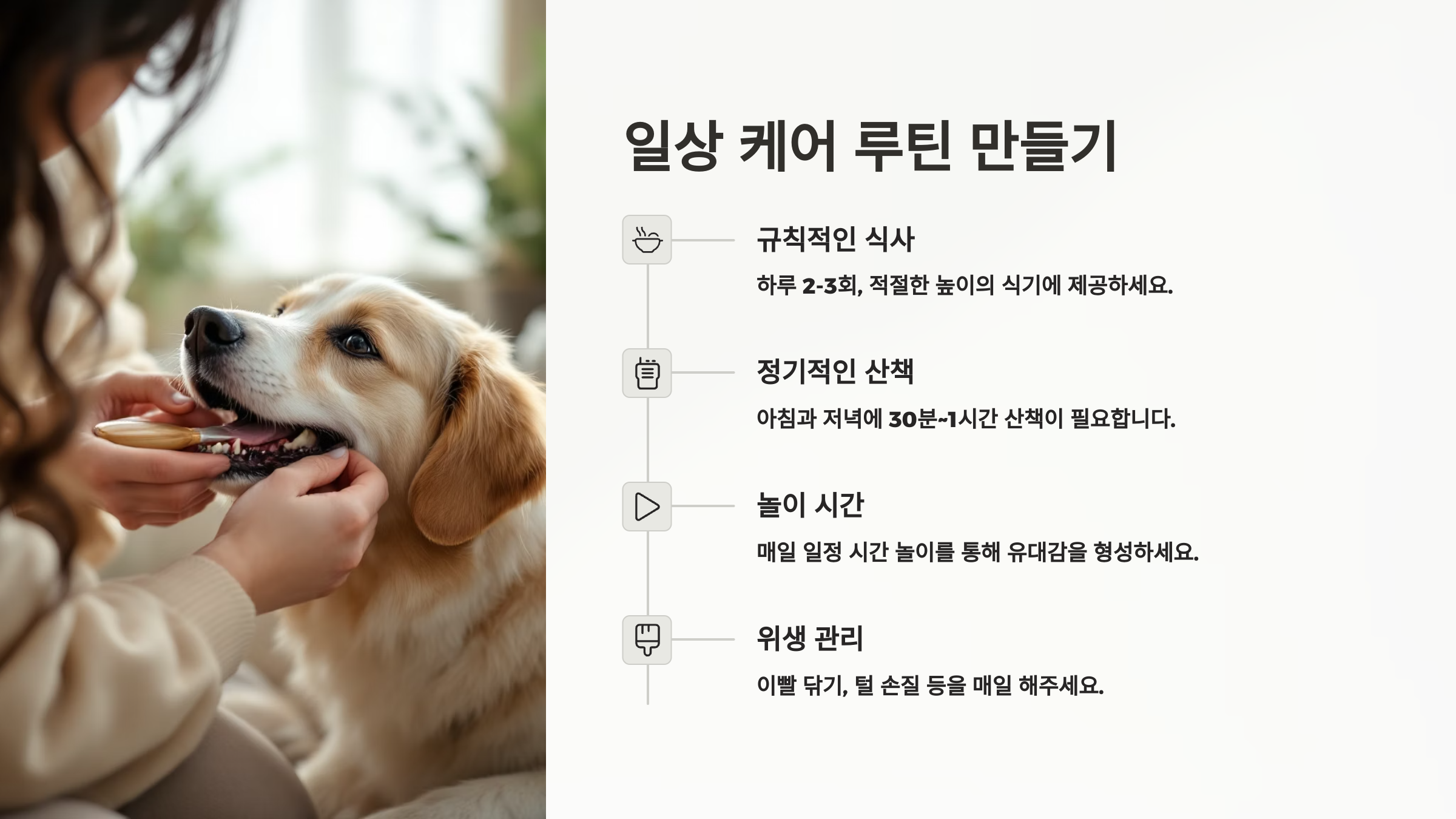 규칙적인 루틴이 반려동물의 행복과 건강을 좌우해요. 꾸준히 실천하면서 우리 아이만의 패턴을 찾아보세요! 📅