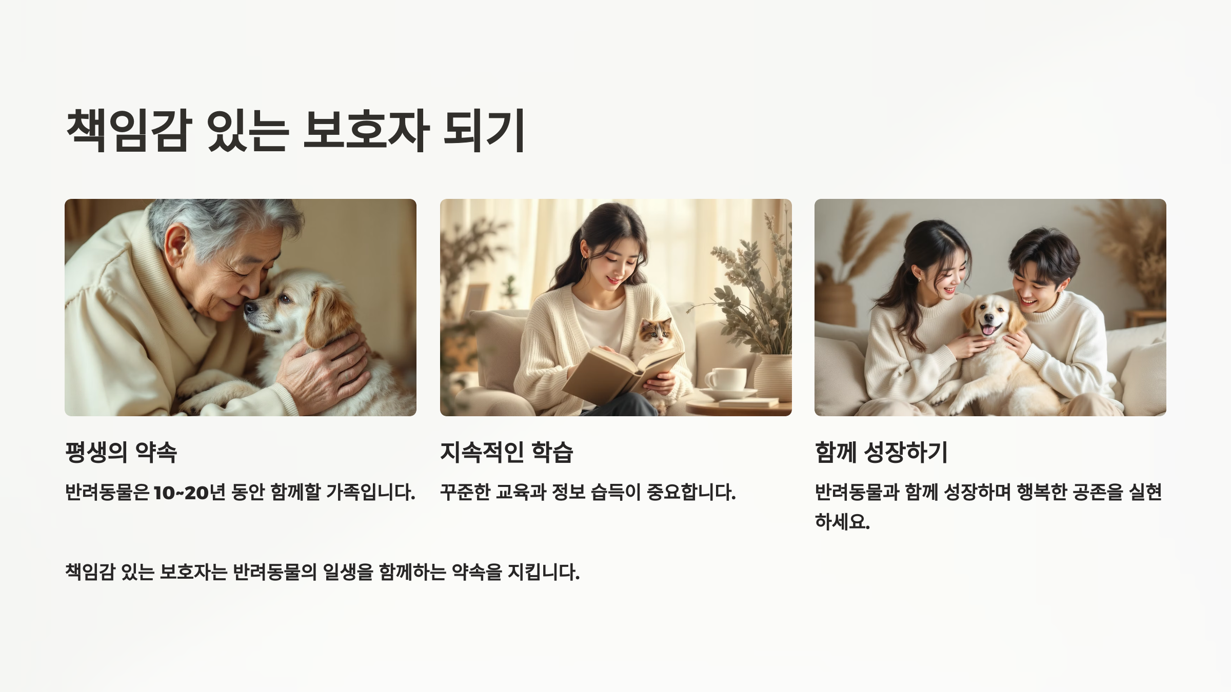 신중한 선택이 행복한 반려생활의 시작이에요. 충분한 고민과 준비를 통해 나에게 맞는 반려동물을 찾아보세요! 🐾