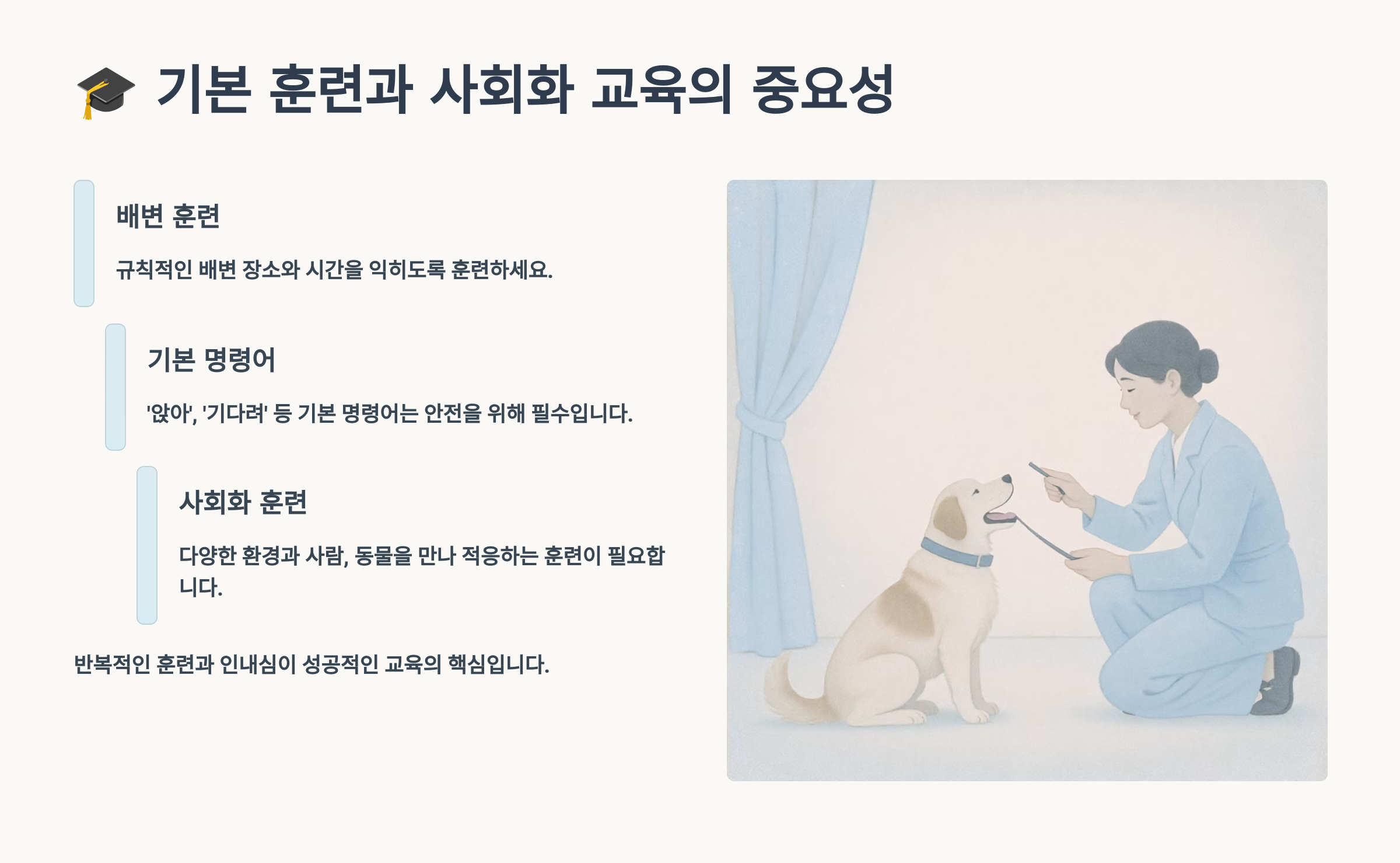 훈련과 교육은 평생 계속되는 과정이에요. 반려동물도 나이가 들면서 새로운 것을 배울 수 있고, 오히려 성견이 되어서 더 집중력이 좋아지기도 해요. 중요한 것은 일관성과 인내심, 그리고 사랑이에요. 올바른 교육을 통해 반려동물과 더욱 깊은 유대감을 형성하고 행복한 동거 생활을 만들어가세요! 🎓