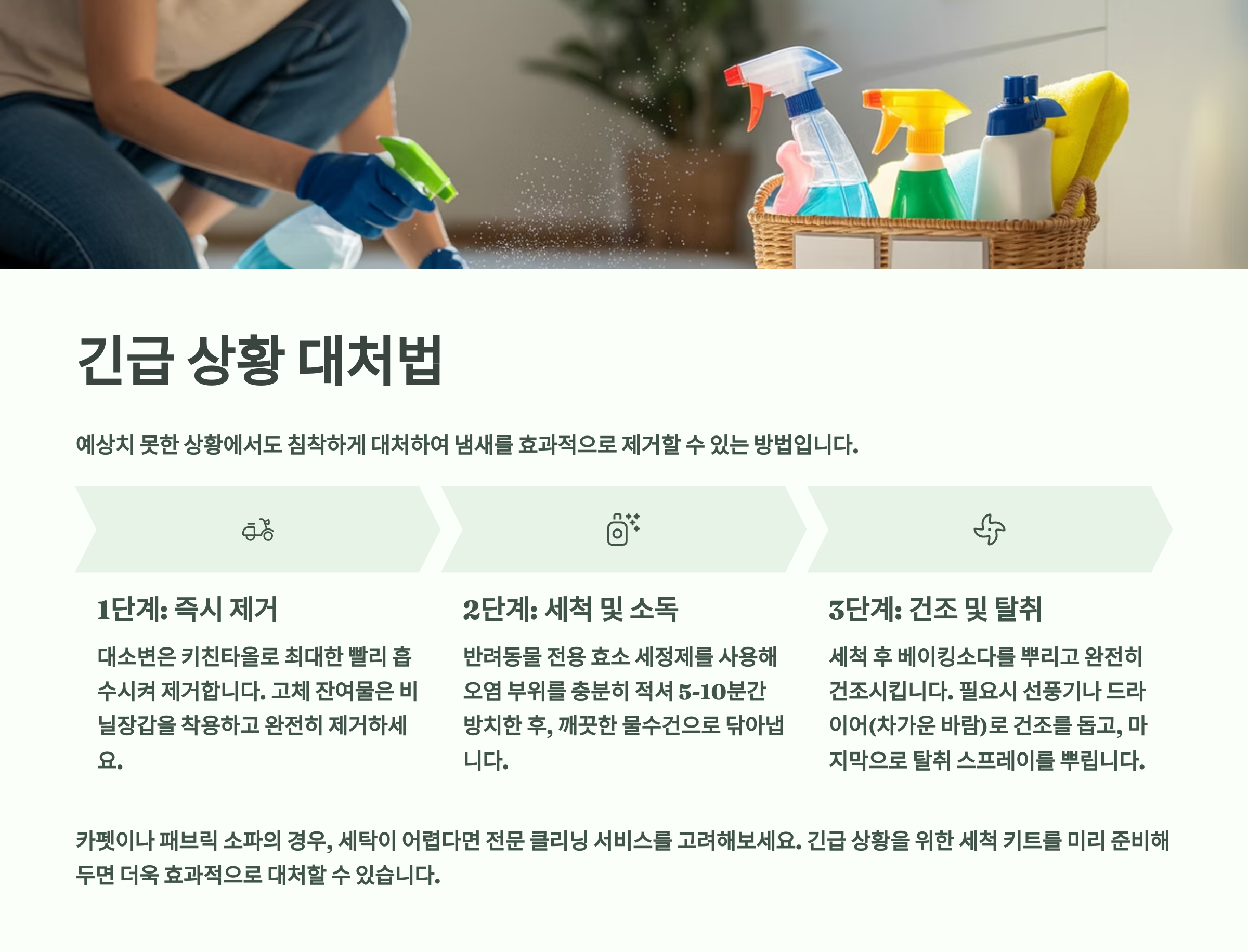 긴급 상황에서도 침착하게 대처하면 충분히 냄새를 관리할 수 있어요. 평소에 기본적인 청소를 해두면 이런 상황에서도 훨씬 수월하답니다! 🚨