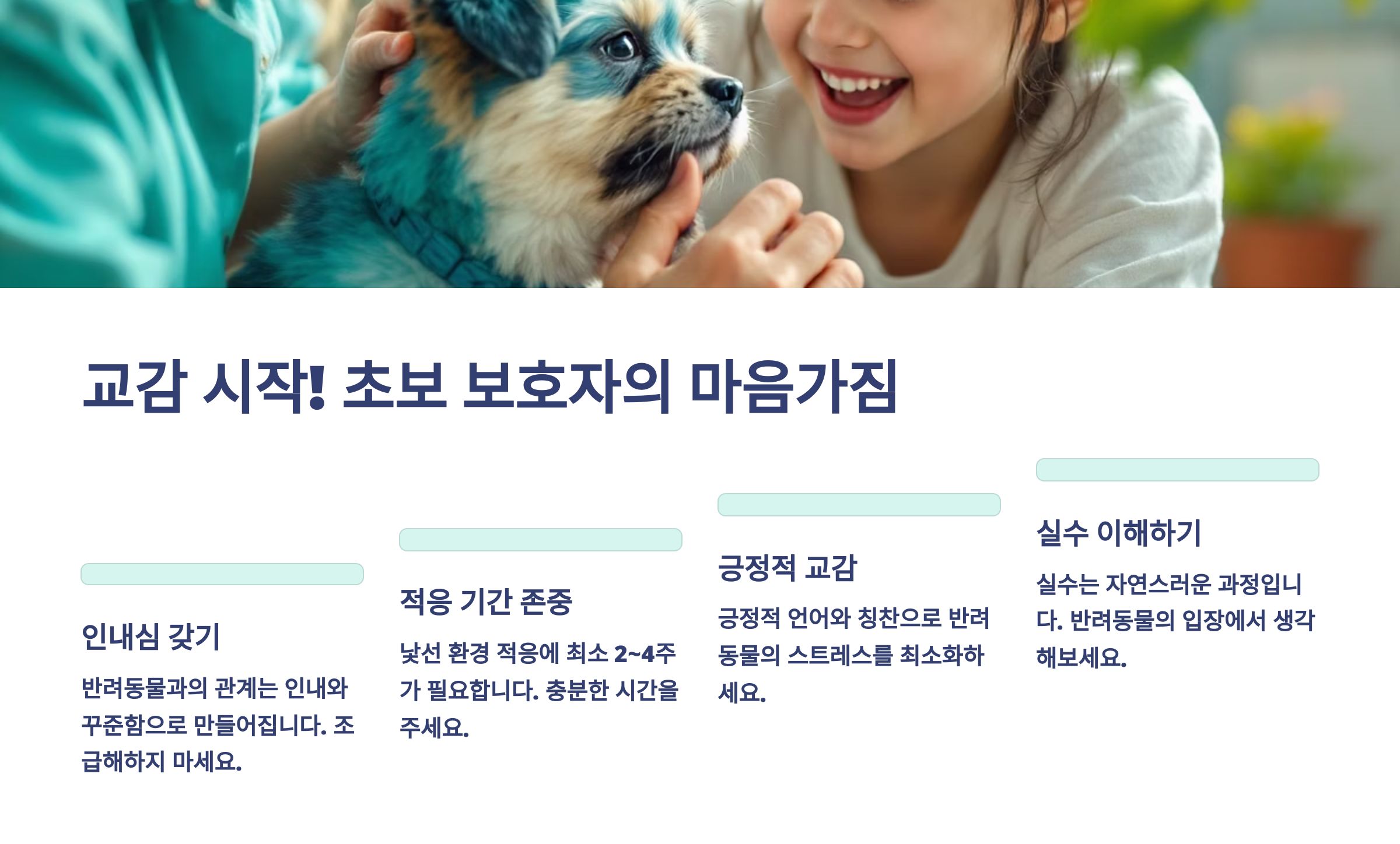 📌 다음 섹션에서는 반려동물과 진짜 교감이 시작되는 순간을 위한 보호자의 마음가짐과 루틴을 소개할게요 💬