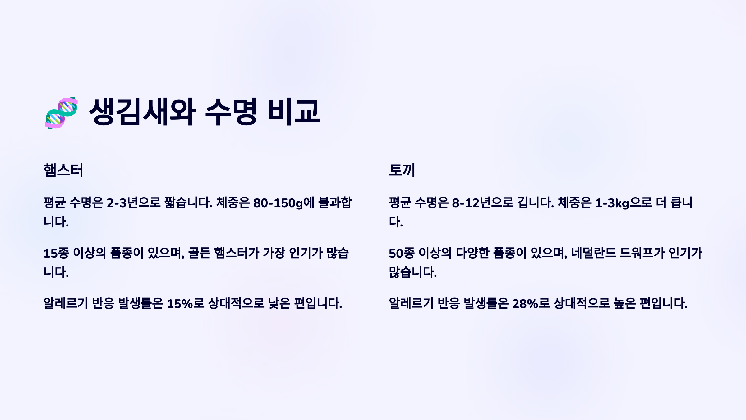 내가 생각했을 때, 이 두 동물은 단순히 ‘어떤 게 더 나아’가 아니라 어떤 성향의 보호자에게 더 맞느냐의 문제예요. 하루 10분의 관심만으로도 마음을 치유해주는 존재들이니, 충분히 고민하고 준비된 상태에서 책임 있게 맞이해보세요. 🌱