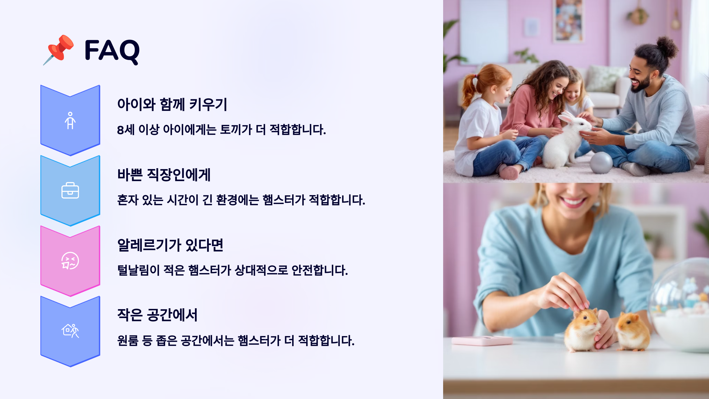다음은 📌 FAQ입니다. 햄스터와 토끼 관련해서 자주 묻는 질문 8가지를 한 번에 정리해드릴게요!