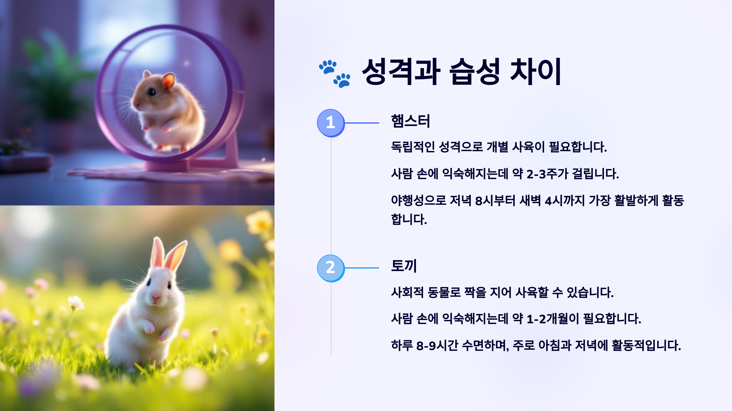 다음은 🐾 성격과 습성 차이입니다. 둘 다 귀엽지만 성격은 전혀 다르기 때문에 ‘나와 잘 맞는 성향’을 꼭 확인해보세요!