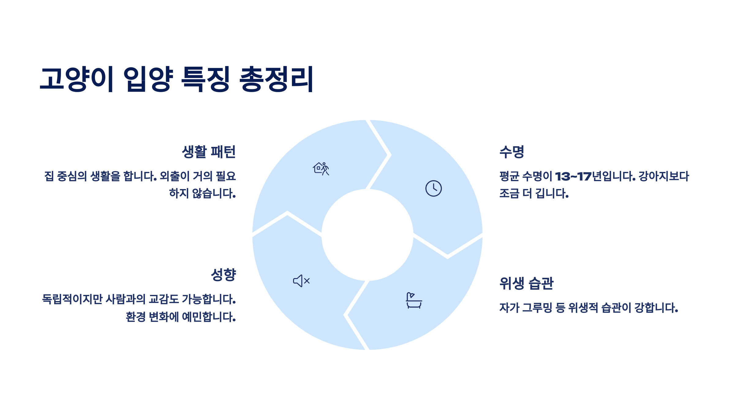 고양이마다 성격은 정말 다양해요. 애교가 많은 아이도 있고, 무심한 듯 독립적인 아이도 있어요. 고양이의 성향을 존중해주는 것이 좋은 관계의 핵심이에요. 🐱💬
