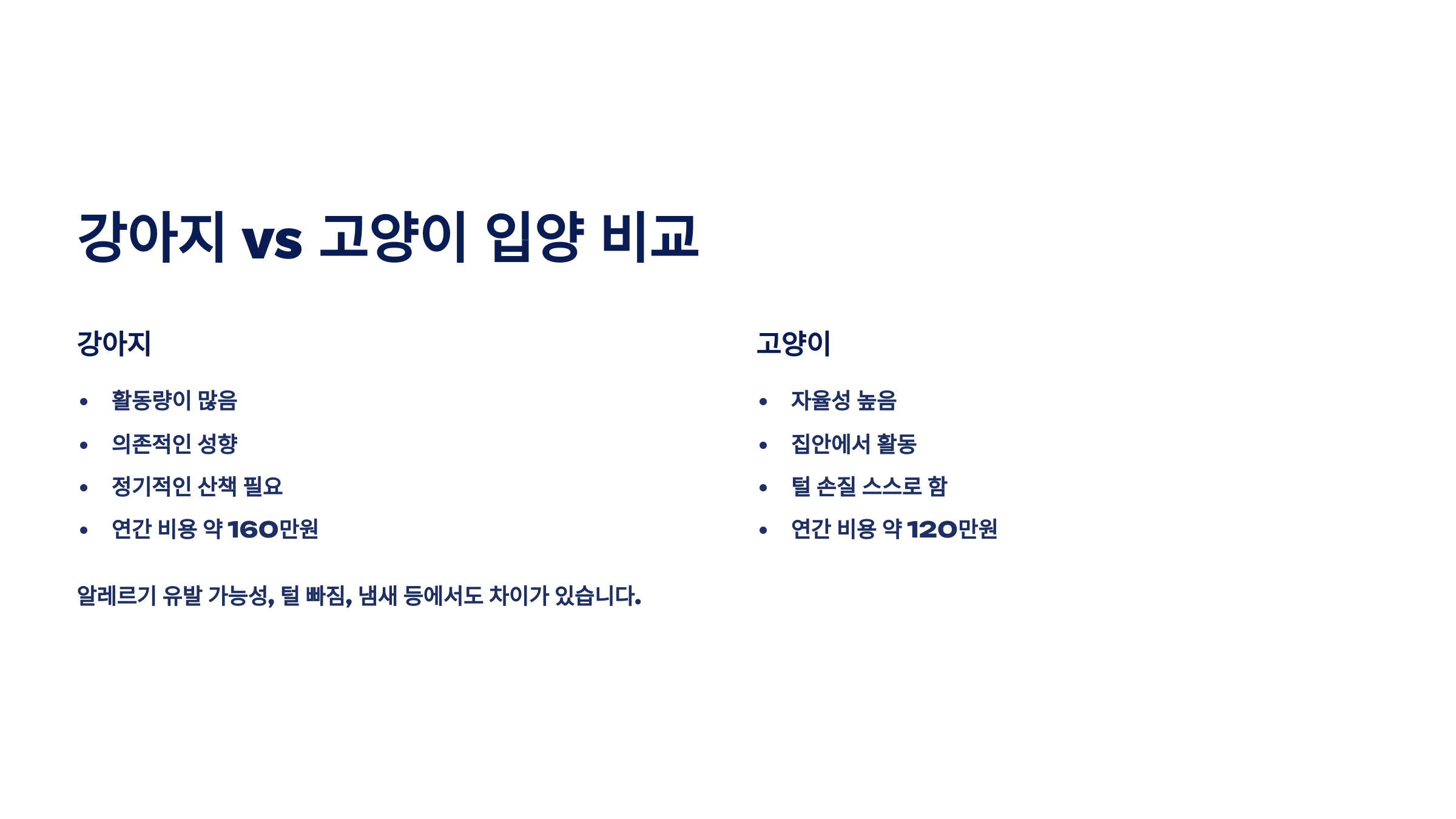 | 항목 | 강아지 | 고양이 |