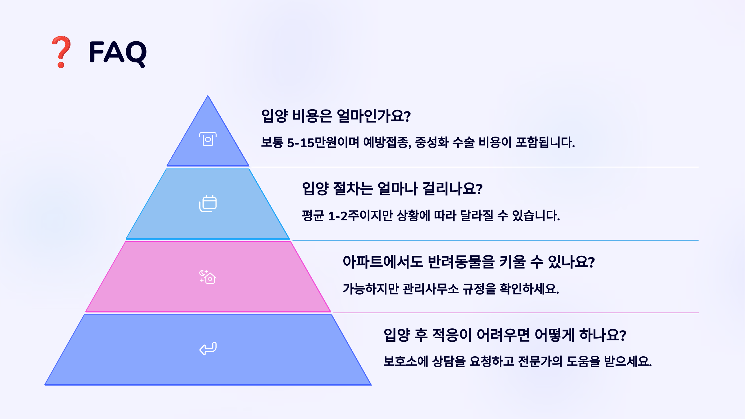 이제 자주 묻는 질문들을 정리해볼게요! ❓ FAQ 섹션에서 입양 관련 궁금증 8가지를 시원하게 해결해드릴게요 🐶📌💬