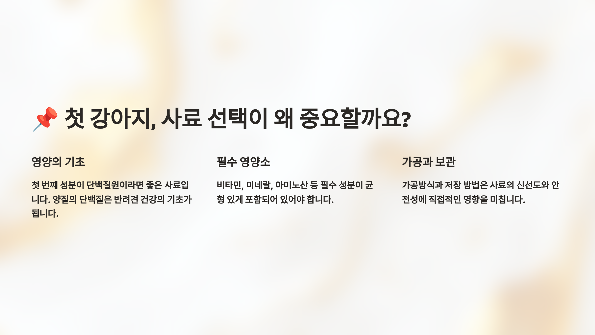 - 📌 첫 강아지, 사료 선택이 왜 중요할까요?