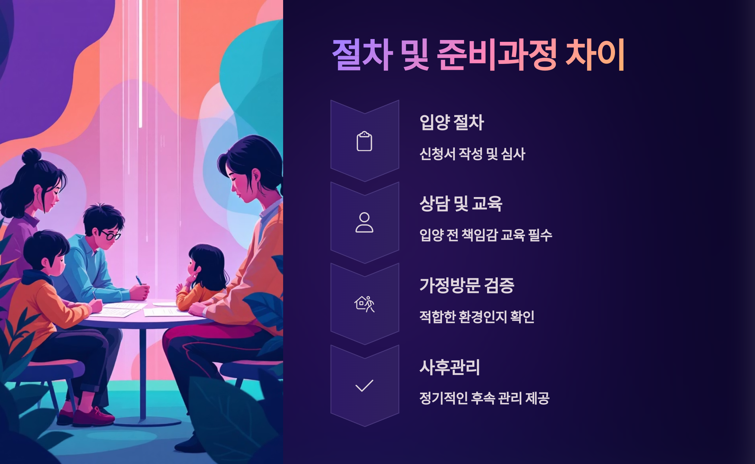 이제 다음은 📝 절차 및 준비과정 차이로 넘어가서 입양과 분양 전 과정이 어떻게 다른지 알려드릴게요!