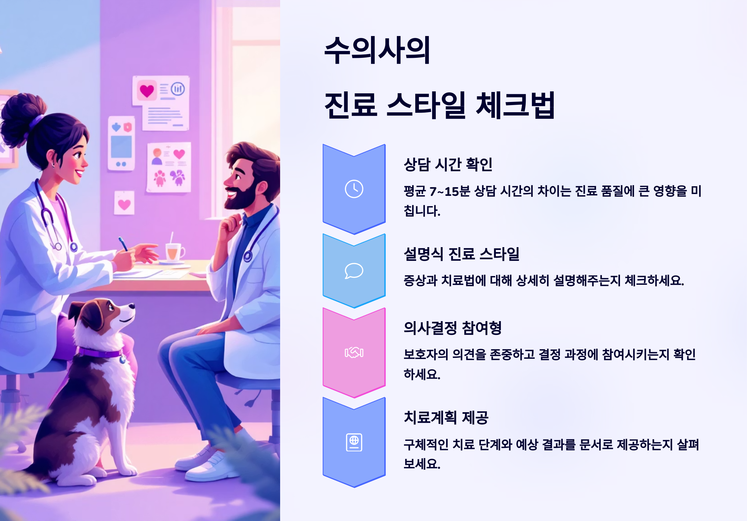 다음은 수의사의 진료 스타일을 확인하는 방법에 대해 알려줄게요! 우리 아이에게 맞는 수의사 찾는 법, 이제 시작해볼까? 👩‍⚕️🐕