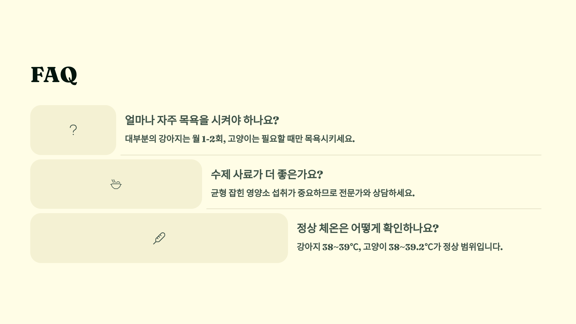 내가 생각했을 때, 꾸준함은 최고의 예방이고 최고의 사랑이에요. 사랑을 보여주는 방법이 꼭 큰 것이 아니에요. 양치 한 번, 산책 30분, 밥그릇을 닦아주는 작은 실천이 반려동물의 삶을 바꾸는 큰 힘이 돼요. 💛