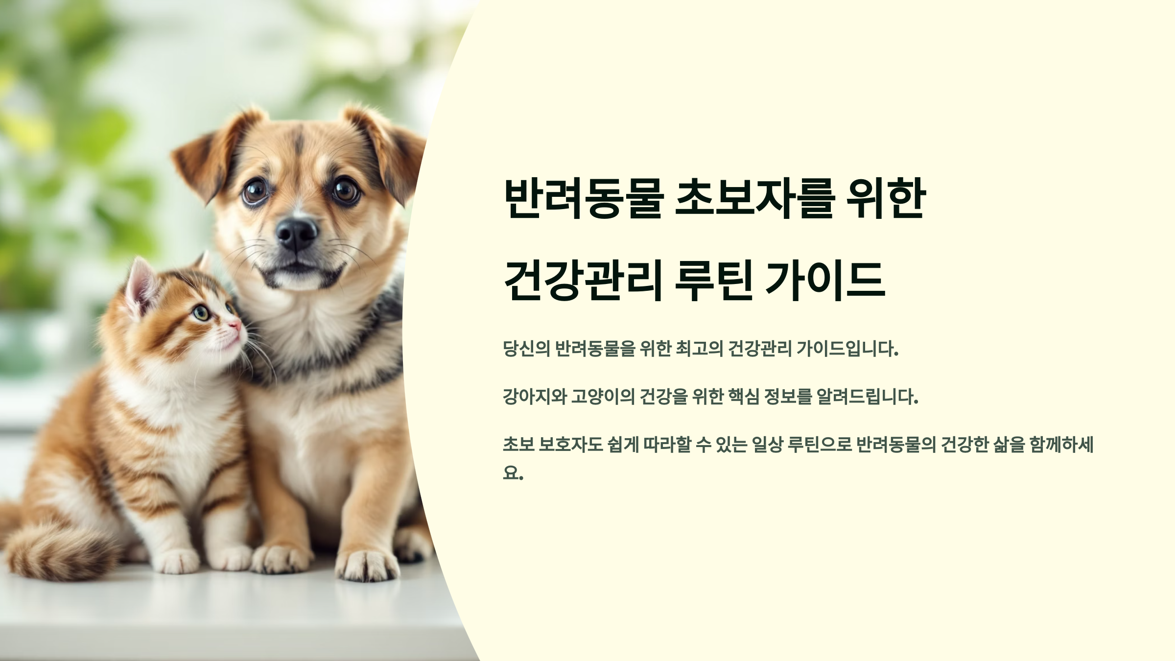 이제는 초보 보호자라도 두렵지 않죠? 오늘부터 하나씩, 나만의 건강 루틴을 만들어보세요. 반려동물은 말없이 우리를 기다리고 있어요. 건강하고 행복한 반려 생활을 응원할게요! 🐶🐱🩺
