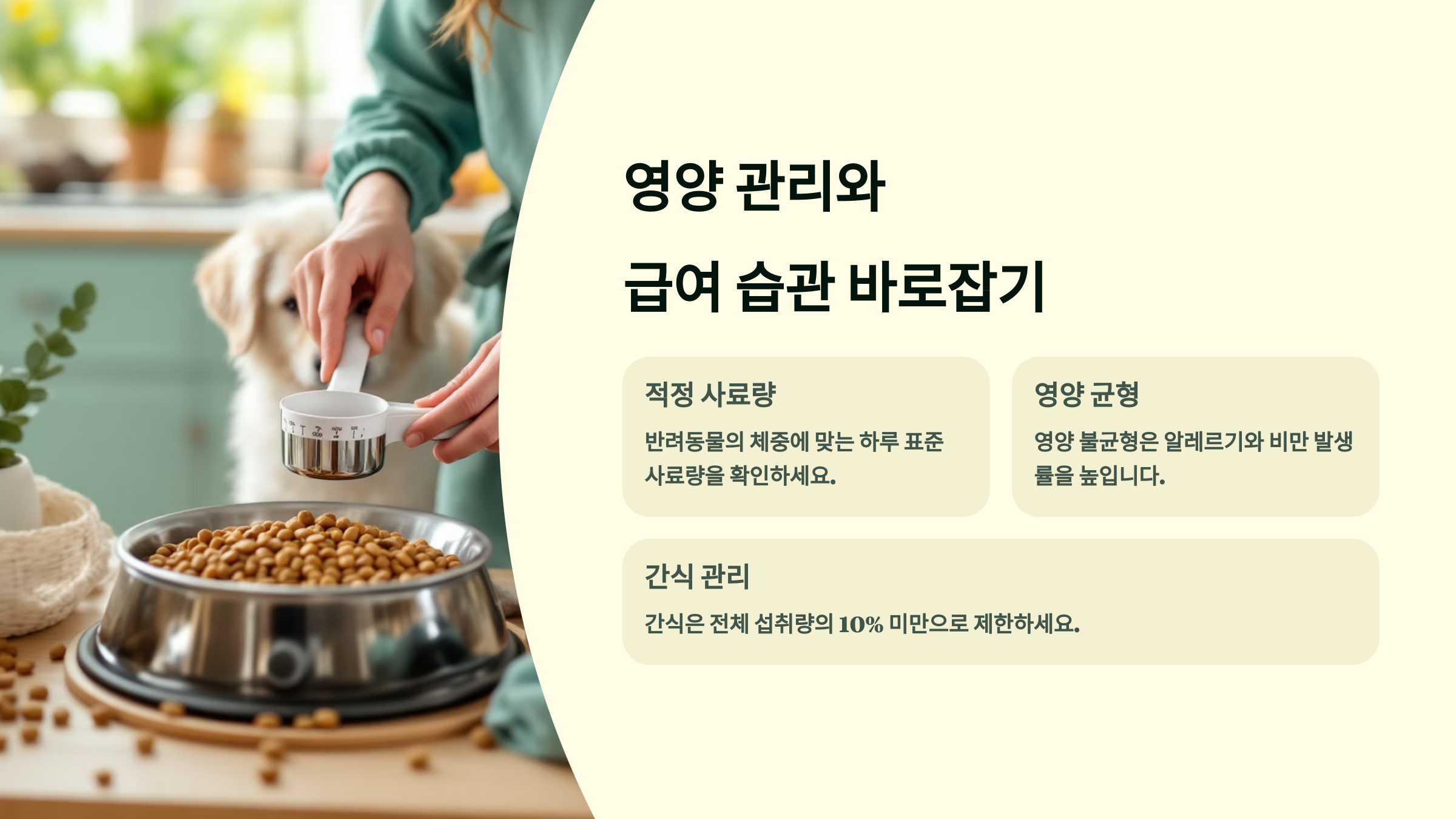 이런 소소한 관리가 모이면 병원비도 줄고, 반려동물의 스트레스도 크게 줄어요. 다음은 급여와 영양관리에 대한 핵심 팁을 정리해볼게요! 🥗