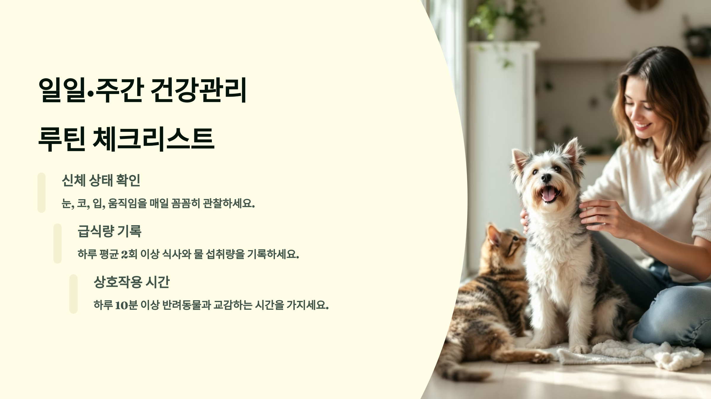 특히 초보 보호자에게는 기초 루틴과 정기적 체크리스트를 만드는 것이 정말 중요해요. 이 글에서는 하루부터 한 달 단위까지 꼭 챙겨야 할 건강 루틴을 아주 쉽고 구체적으로 소개할 거예요. 이제 건강관리는 어렵지 않아요! 🩺🐶🐱