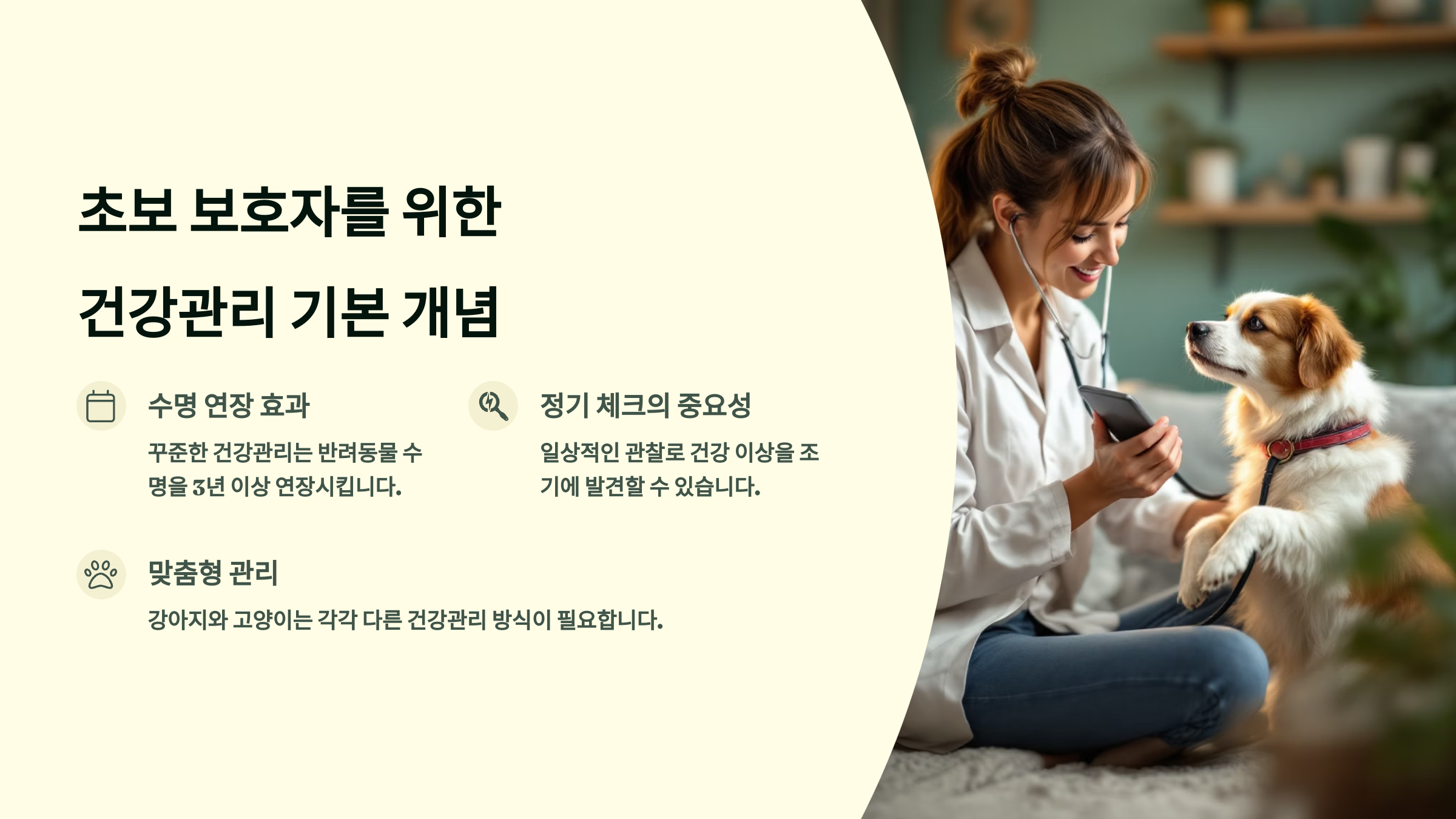 반려동물을 처음 키우는 보호자라면 가장 먼저 고민하게 되는 것이 바로 ‘건강관리를 어떻게 해야 할까?’라는 질문이에요. 건강관리는 단순히 병에 걸렸을 때 치료하는 것이 아니라 매일매일의 생활 속에서 예방하고 돌보는 습관이랍니다. 🐾