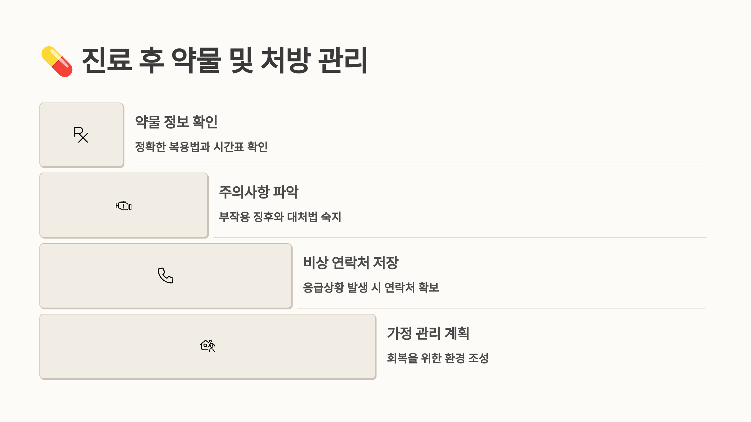 | 진료 전 증상 간단 정리 | 불필요한 반복 설명 줄임 |