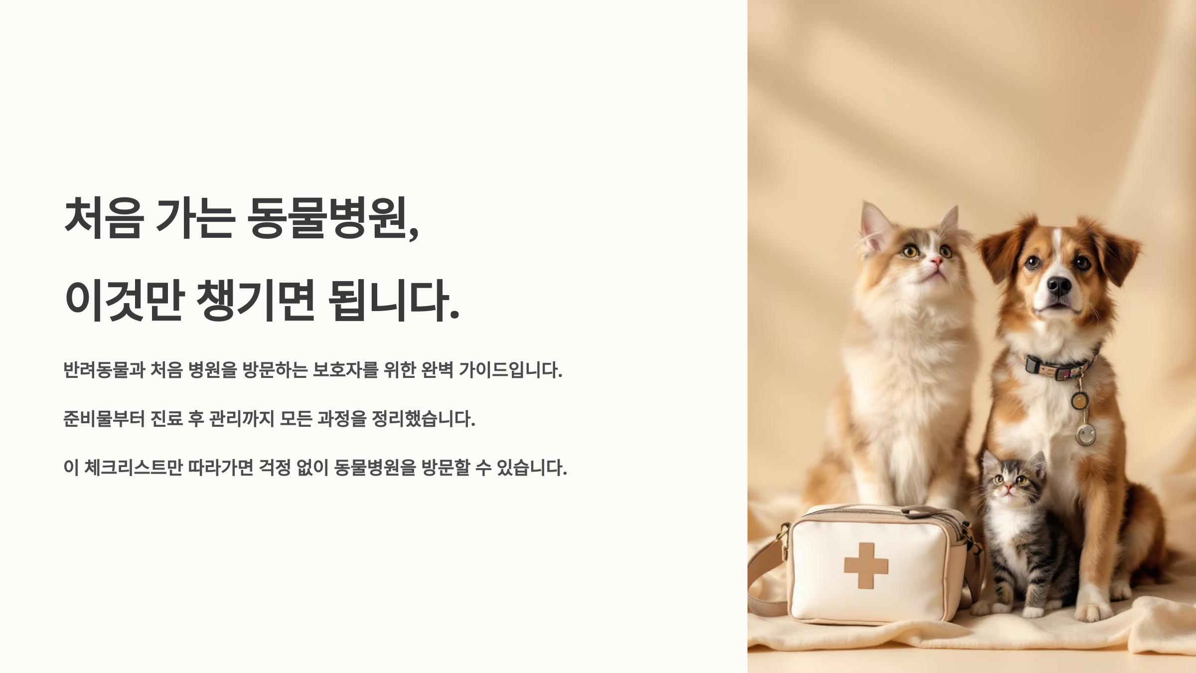 🧳 동물병원을 처음 방문할 때 가장 걱정되는 것 중 하나가 “뭘 챙겨가야 하지?”예요. 사실 꼭 필요한 준비물은 몇 가지뿐이지만, 상황에 따라 준비해야 할 항목이 달라질 수 있어요.