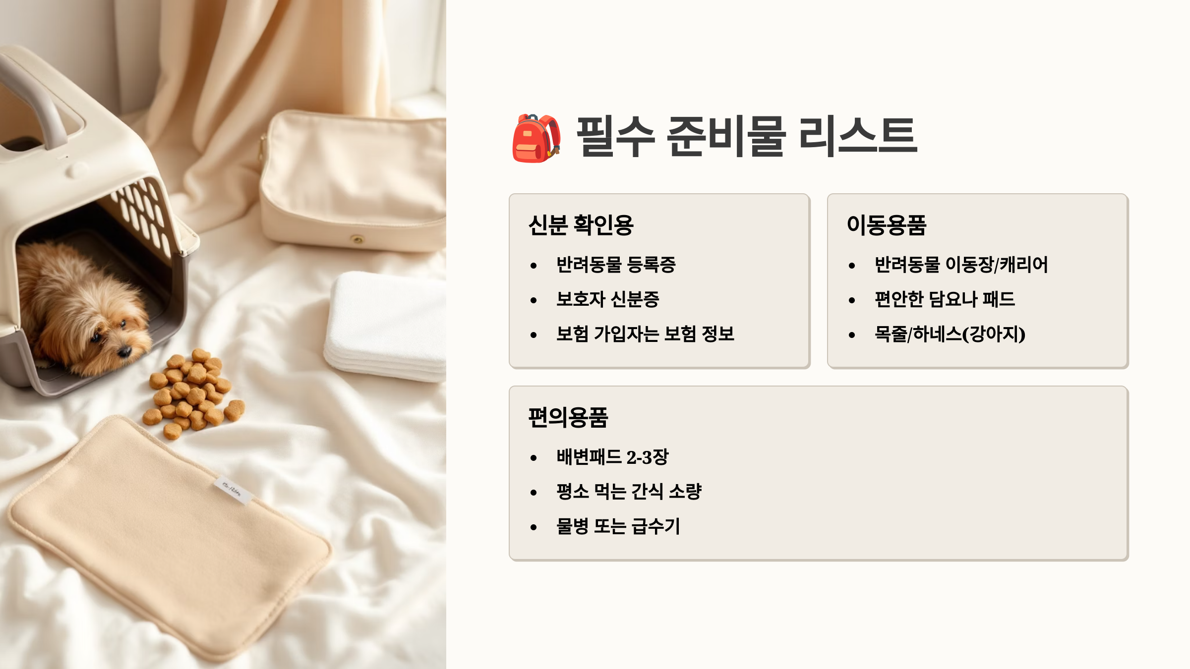 📌 체크리스트를 하나하나 준비하면서 보호자도 마음의 여유가 생겨요. 아이도 그 안정감을 느낀답니다! 다음 섹션에서 이동장 준비도 자세히 알려줄게요. 🎒🧘♀️