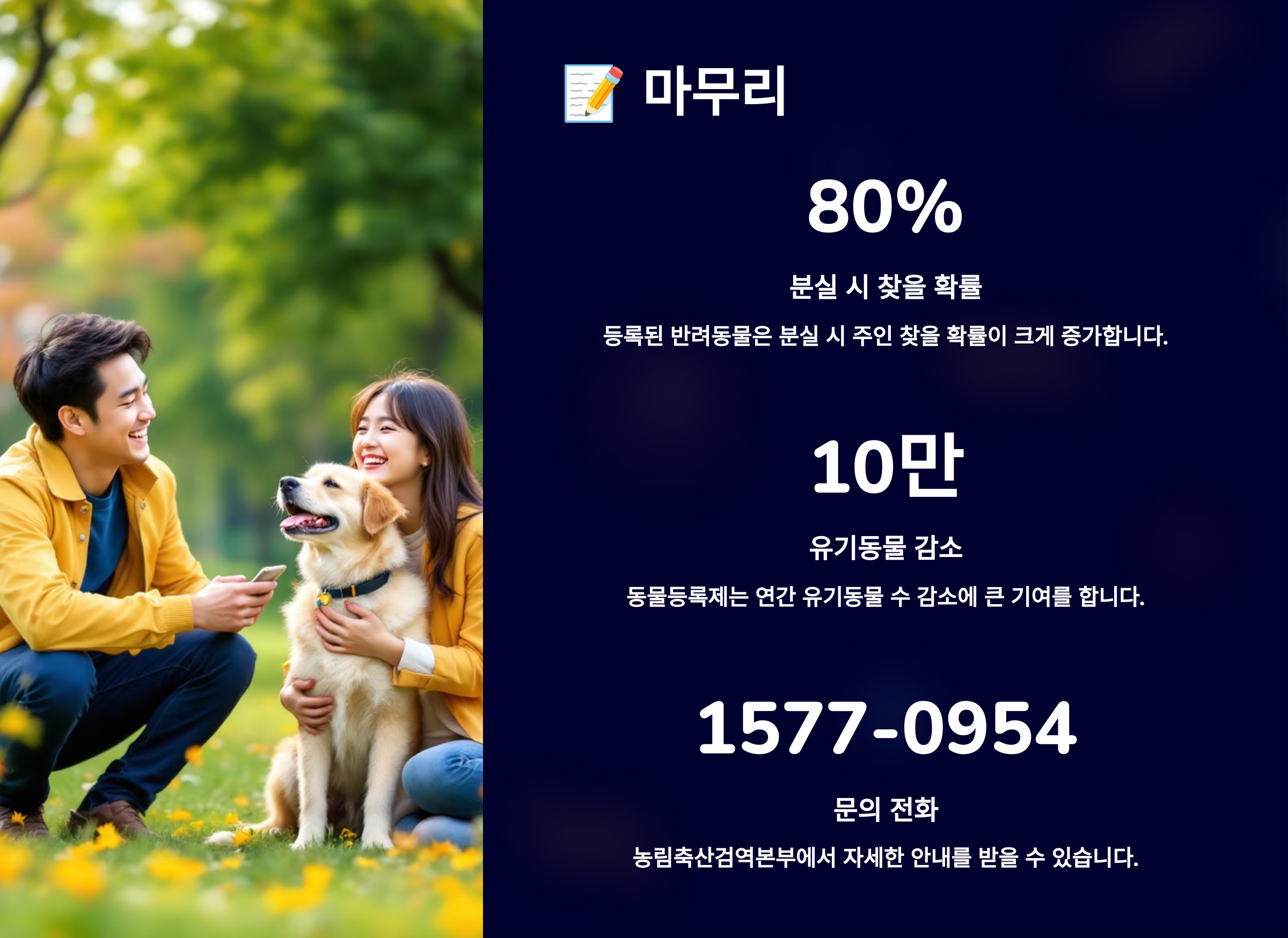 내가 생각했을 때, 진짜 보호자는 작은 책임도 미루지 않는 사람이라고 믿어요. 등록은 그 책임의 첫걸음이고, 사랑의 실천이에요. 한 번의 등록이 누군가의 평생이 될 수 있어요. 📋