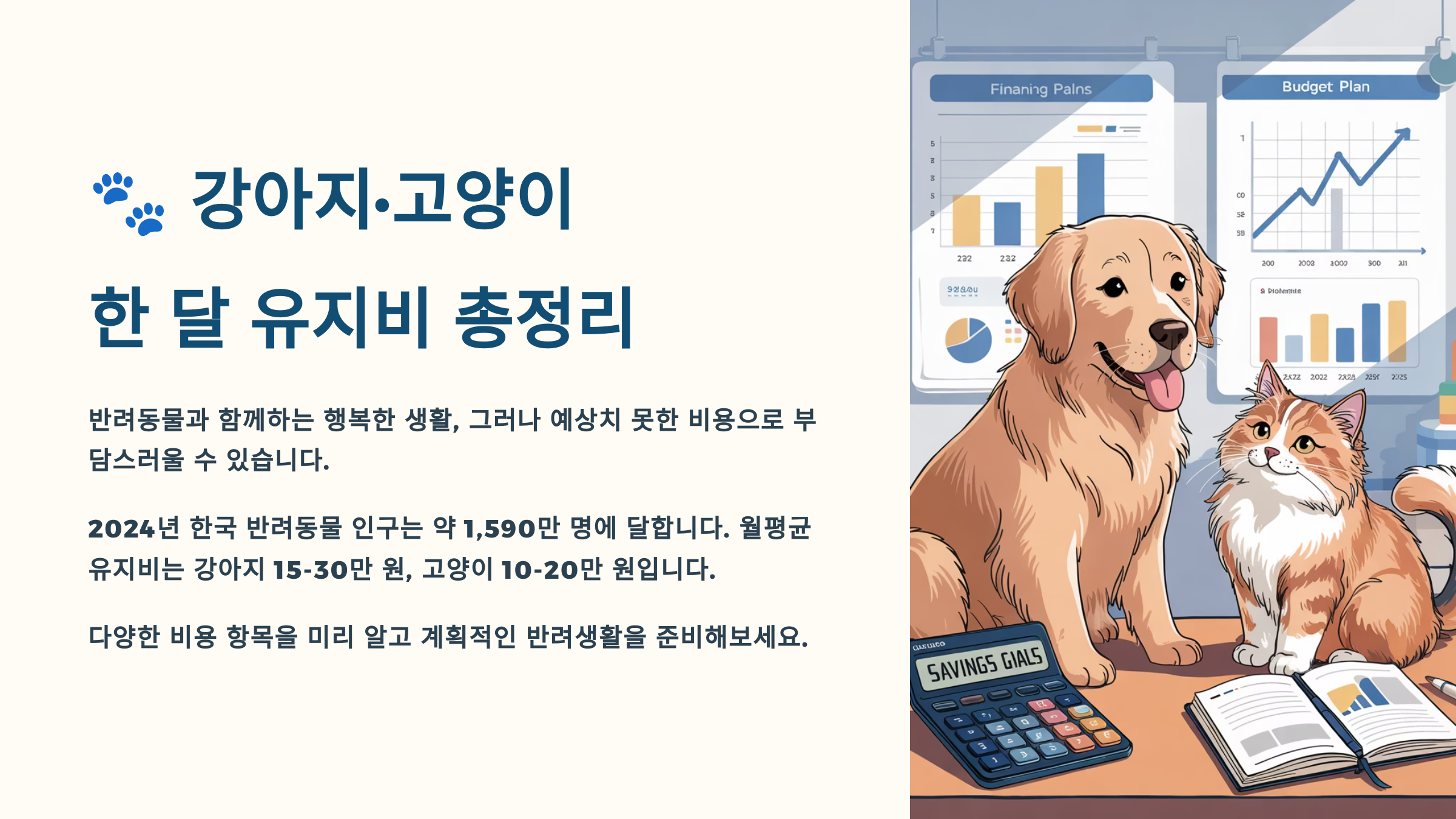 그럼 이제 본격적으로 강아지와 고양이의 한 달 유지비를 항목별로 알아보면서, 우리 반려동물을 위한 경제 계획을 세워볼까요?