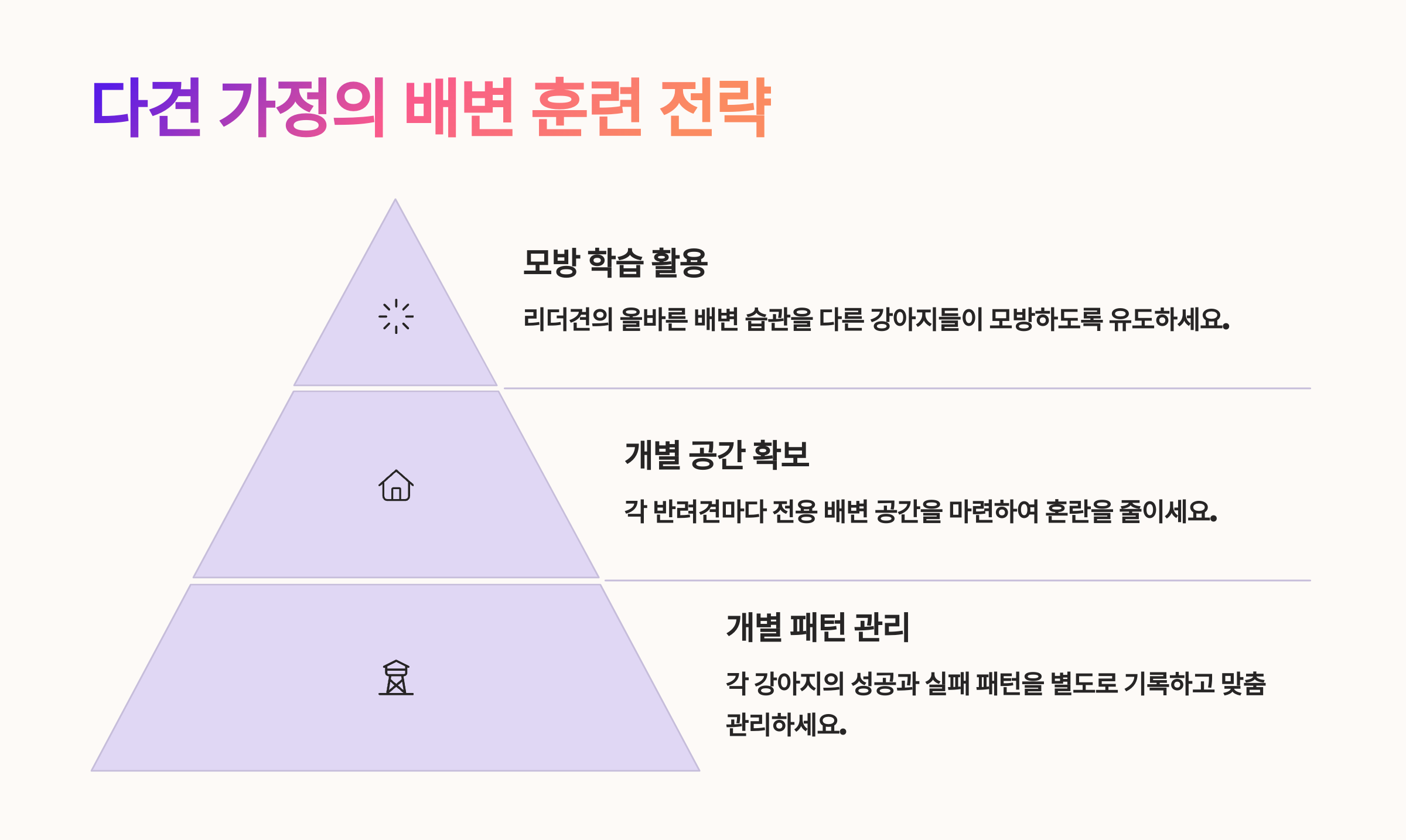 정리하자면, 다견 가정의 배변 훈련은 “함께지만 따로”라는 원칙을 기억해야 해요. 개별 루틴이 정착된 후엔 자연스럽게 함께 배변하는 습관도 자리 잡을 수 있어요 🏡🐶🐶