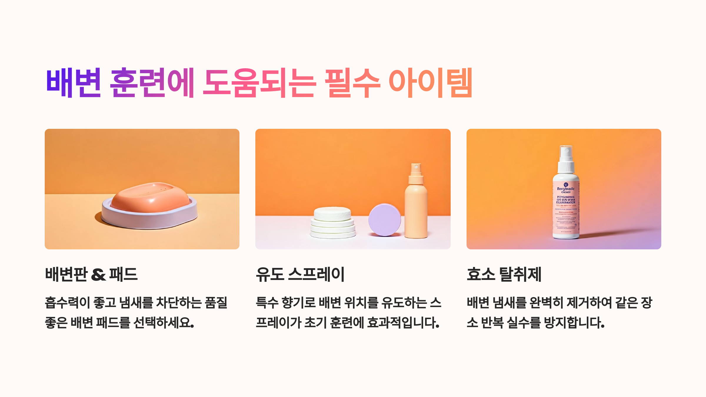 배변 훈련에 있어 꼭 필요한 건 환경 설정과 보조 도구예요. 단순히 배변판만 깔아두는 것보단, 훈련 목적에 맞는 아이템을 활용하면 훨씬 빠르고 안정적인 결과를 얻을 수 있어요 📦