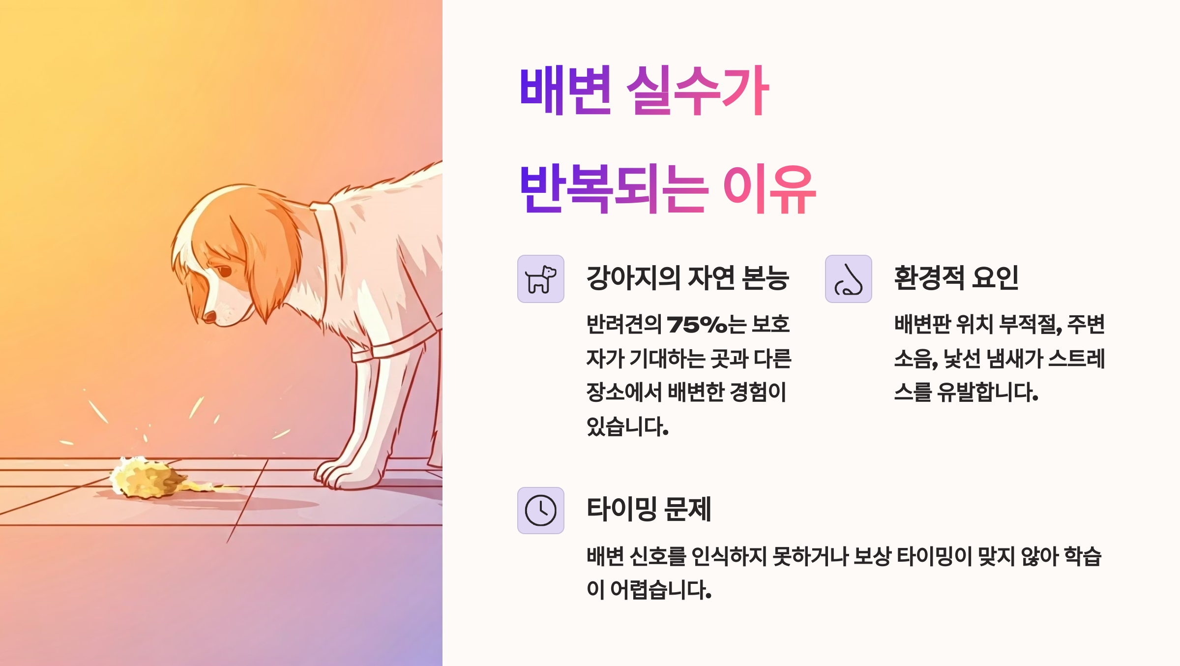 실수를 반복한다고 해서 혼내기만 하면 반려동물은 더 혼란스러워져요. 배변 실수는 반드시 원인부터 파악하고, 그에 맞는 맞춤 훈련으로 접근해야 개선된답니다. 다음 섹션부터는 그 방법들을 하나하나 정리해드릴게요! 💪